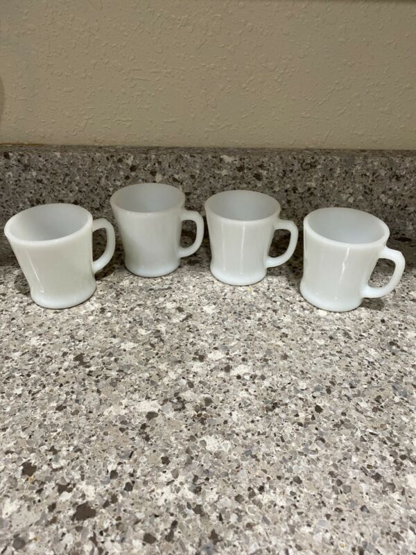 Title (ebay affiliate link): Vintage Set of 4 White Milk Glass Fire King D Handle Coffee Cups Mugs