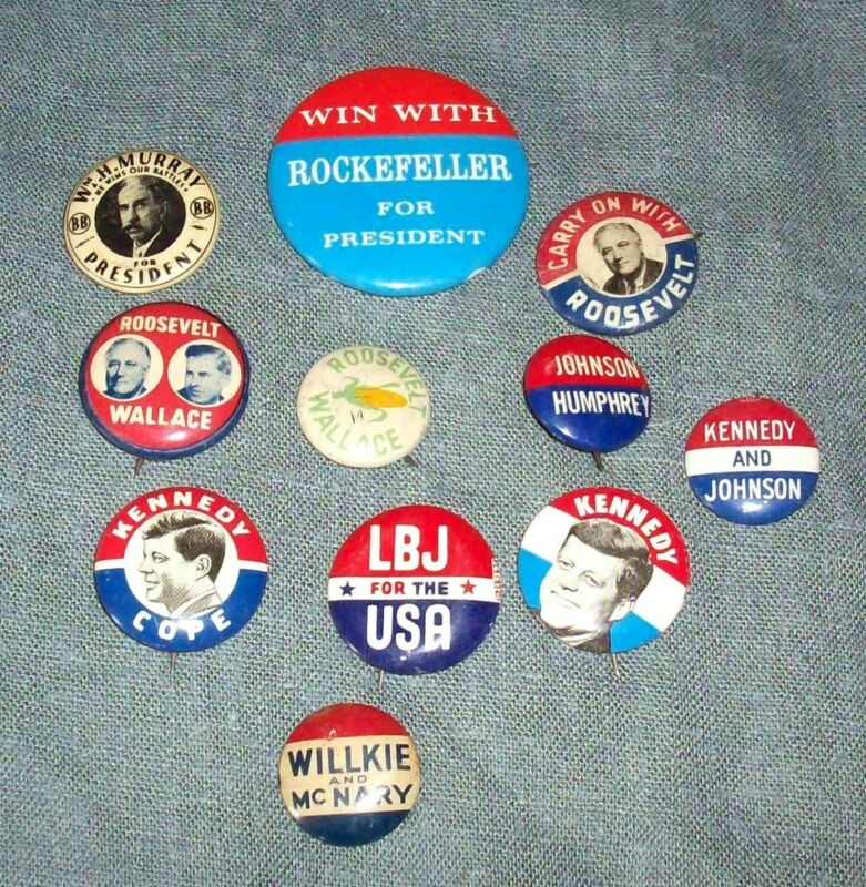 Title (ebay affiliate link): VARIOUS POLITICAL CAMPAIGN BUTTONS - KENNEDY, WILLKIE, ROOSEVELT, LBJ