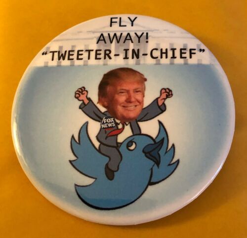 Title (ebay affiliate link): Creative 3" Anti-Trump Fly Away! "Tweeter-In-Chief" Political Pinback Button