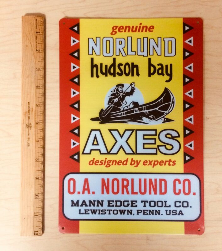 Title (ebay affiliate link): NORLUND Hudson Bay AXE Metal Sign + Diecast Pin + Sticker Bundle