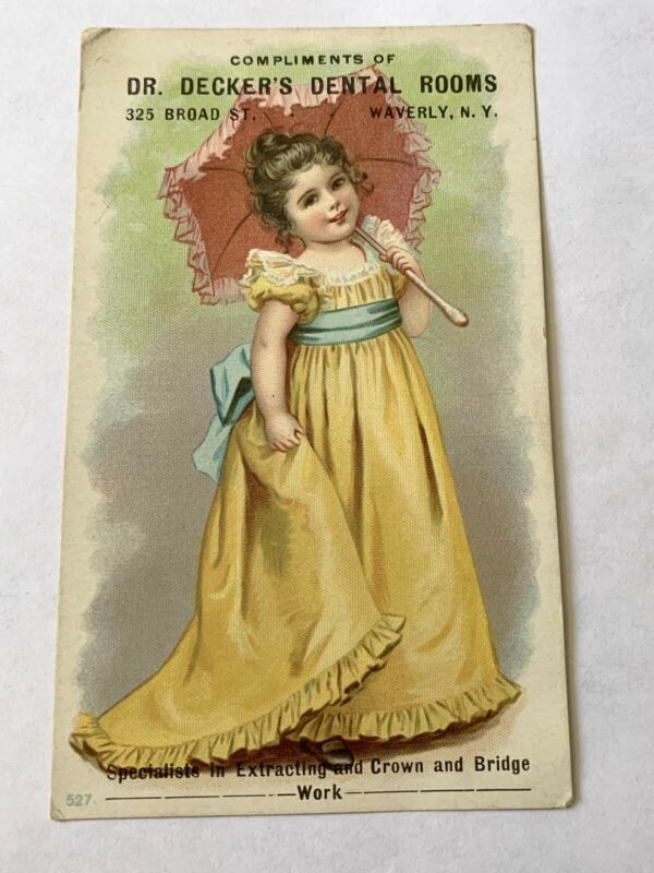 Title (ebay affiliate link): Victorian Advertising Trade Card - Dr. Deckers Dental Rooms - Waverly , N.Y