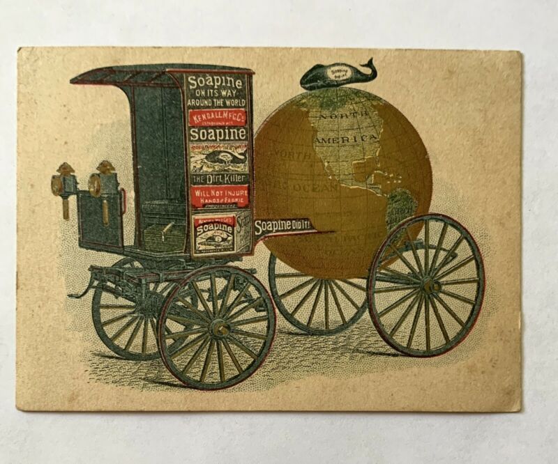 Victorian Advertising Trade Card - Soaping - Carriage , Globe , Whale