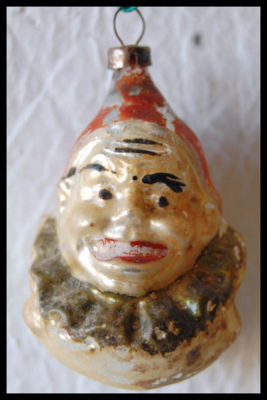 24. ANTIQUE CLOWN HEAD GLASS CHRISTMAS ORNAMENT