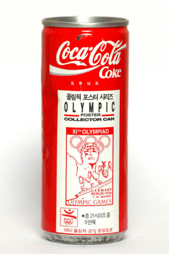 Title (ebay affiliate link): 1992 Coca Cola can from Korea, Barcelona ''92 Olympic Poster / Berlin 1936