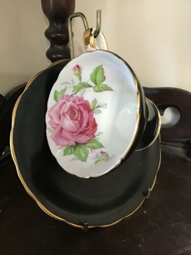 Title (ebay affiliate link): Ansley Corset shape black with Pink Roses bone china Tea Cup & Saucer marriage