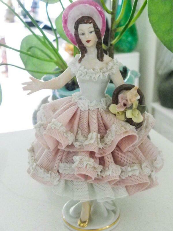 Title (ebay affiliate link): Antique Dresden Lace Lady with Basket of flowers - Made in Germany C.1910 -H17cm