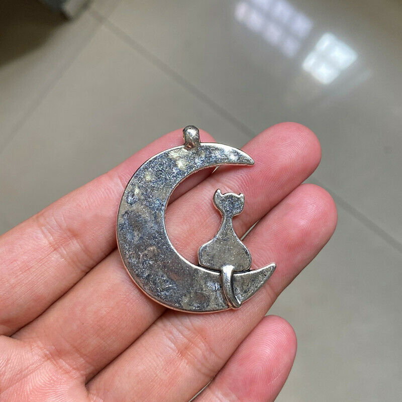 Title (ebay affiliate link): 2pcs Big Moon Cat Charms Antique Silver Tone Making Jewelry