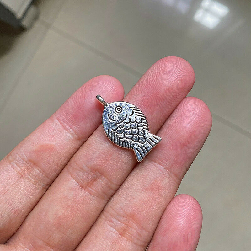 Title (ebay affiliate link): 6pcs 25x14mm Double Sided Fish Charms Antique Silver Tone Making Jewelry