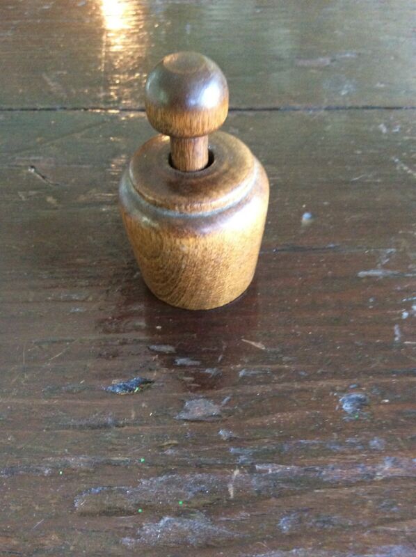 Title (ebay affiliate link): Antique Wooden Butter Pat Mold ACORN Wood Stamp Cup Primitive