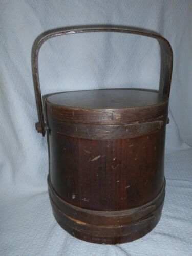 Title (ebay affiliate link): ANTIQUE/VINTAGE WOOD FIRKIN, BUCKET W/LID, PUTNEY, VERMONT, 10 1/2" TALL
