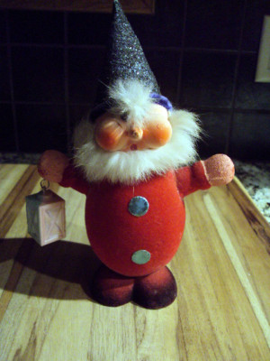 Vtg Christmas Santa Elf Candy Container Mica Fur Beard