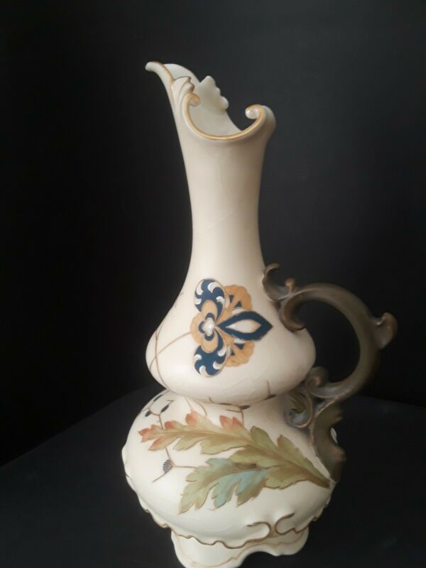19 c Art Nouveau Carlsbad Pottery Enamel Flower Ewer Vase