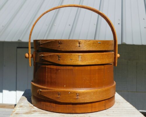 Title (ebay affiliate link): Vintage Primitive Wood Firkin Pantry Bucket with Lid & Bent Wood Handle 5" x 7"