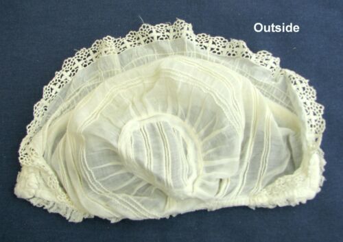 Antique Doll Clothing - White Lacey Baby Bonnet for Larger Doll