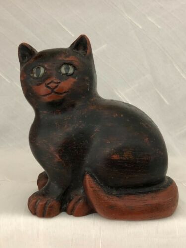 ANTIQUE HAND CARVED WOOD CAT PRIMITIVE SIGNED DOOR STOP