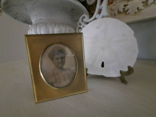 Antique Gold Photo Frame Convex Glass Wallet Size Opening Easel Stand