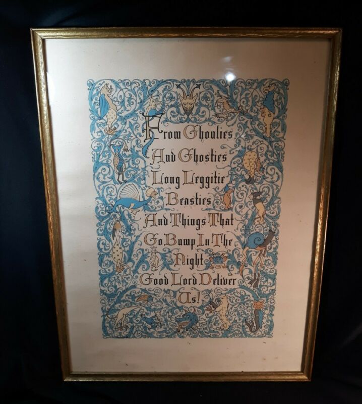 Title (ebay affiliate link): #14E -ANTIQUE GHOULIES & GHOSTIES HANDMADE CALLIGRAPHY 20x15" Framed under glass