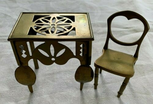 Antique Brass Desk and Chair Set Dollhouse Furniture Miniature Cutwork Design