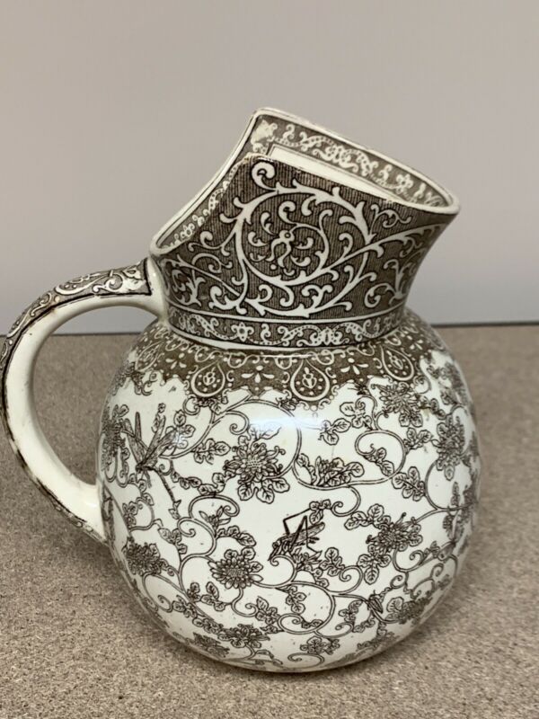 Antique 1880 Doulton Burslem Brown Transferware Aesthetic Pitcher Bugs Bees