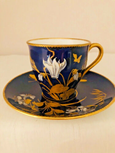 Title (ebay affiliate link): ANTIQUE MINTONS DEMITASSE CUP AND SAUCER COBALT BLUE EMBOSSED GOLD CA 1900