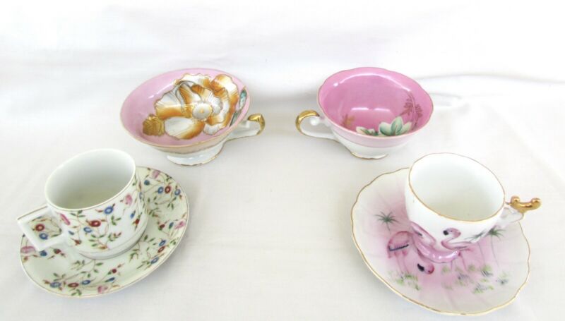 Vintage 1945-52 OCCUPIED JAPAN CHINA CUPS SAUCERS FLAMINGO SAJI PRINCESS (6PC)