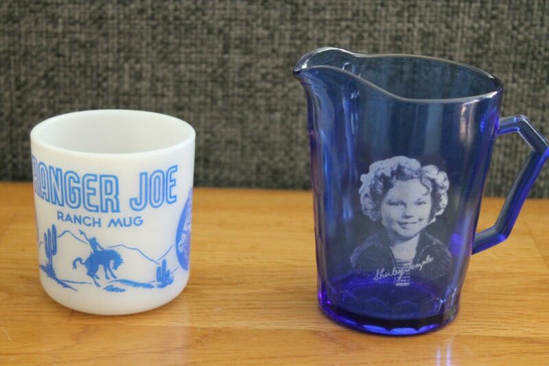 Title (ebay affiliate link): Vintage ''30''s Shirley Temple Cobalt Creamer, 50''s Ranger Joe Mug Milk Glass Mug