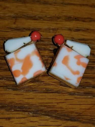 Title (ebay affiliate link): Vintage Orange and White Milk Glass Clip On Women''s Earrings