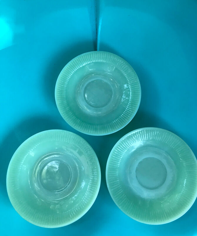 Lot of 3 Vintage Fire King Jadite Jadeite Jane Ray Saucers Green Milk Glass