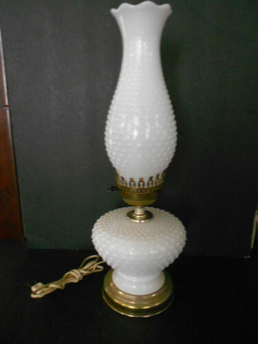 Title (ebay affiliate link): Vintage Electric Milk White Hobnail Glass Table Hurricane 3 way Lamp 18" tall