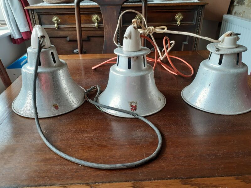 Three Vintage Industrial Pendant Type Lights