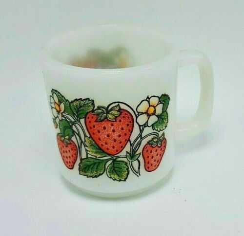 Vintage GLASBAKE Milk Glass Mug STRAWBERRY Coffee Cup