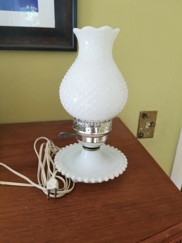 Vintage 12'''' White Hobnail Milk Glass Electric Lamp