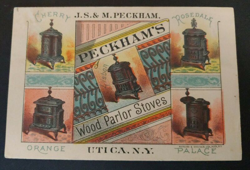 Trade Card PECKHAM''S WOOD PARLOR STOVE''S, UTICA NY - "CHERRY,ROSEDALE,PALACE"