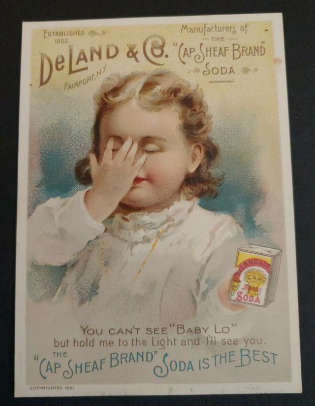 Title (ebay affiliate link): Trade Card DeLAND & CO - "CAP SHEF BRAND BAKING SODA" HOLD 2 LIGHT CARD - GIRL