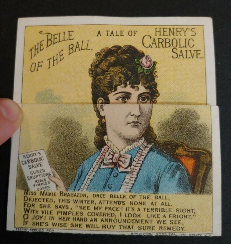 Title (ebay affiliate link): Trade Card HENRY''S CARBOLIC SALVE - FOLDED FACE CHANGING - BELL OF THE BALL