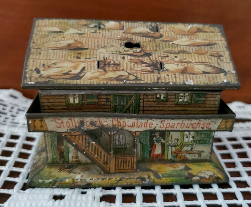 Title (ebay affiliate link): Antique Stollwerck German Chocolate Tin Figural Advertising Bank