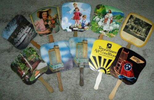10 Vintage Hand Fans Mortuary Angel Jesus Paddle Wheeler TN GA