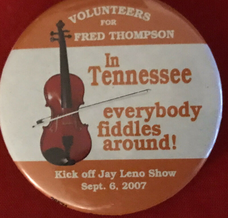 Title (ebay affiliate link): TENNESSEE Political PinBack FRED THOMPSON Button JAY LENO Campaign Pin Badge