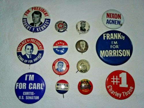 Title (ebay affiliate link): 13 political pin backs 1 bat mobile pinback. Wallace for Pres, Robert Kennedy