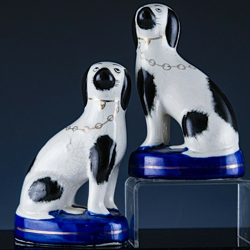 Title (ebay affiliate link): FINE PAIR ANTIQUE VICTORIAN STAFFORDSHIRE POTTERY BLACK WHITE ENAMEL DOG FIGURES