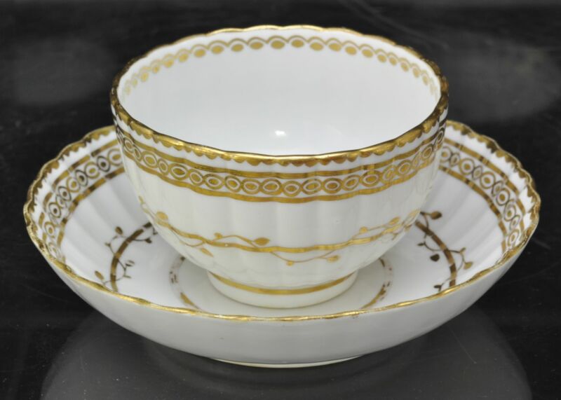 Title (ebay affiliate link): Antique Ribbed White and Gold Derby Handleless Cup and Saucer c 1790