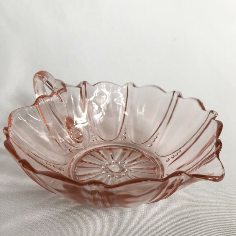 Pink Depression Glass Oyster And Pearl Heart Shaped Handled Dish Anchor Hocking