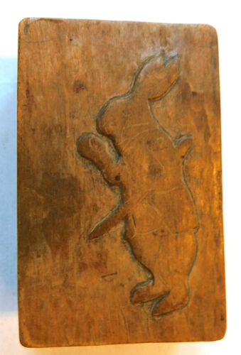Title (ebay affiliate link): ANTIQUE HAND CARVED FOLK ART WOODEN BUTTER PRINT MOLD PRESS BUNNY