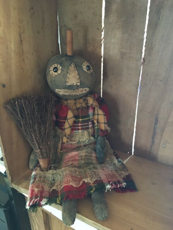 Title (ebay affiliate link): Primitive Handmade Fall Autumn Black Pumpkin Doll With Broom