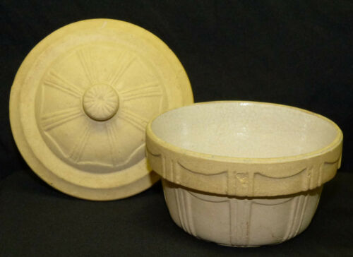 Title (ebay affiliate link): Antique Vtg Miniature Sanito Covered Crock Bowl w/ Lid Toy Salesman Sales Sample