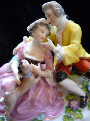 Antique Porcelain Figure Lady Pug Dog Box Capodimonte