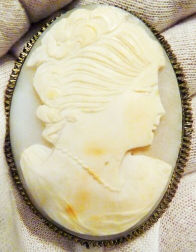 HUGE ANTIQUE Victorian EDWARDIAN Shell CAMEO Brooch Pin BEAUTIFUL PIECE