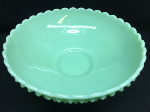 Jadeite green glass console wedding bowl Hobnail pattern candy desert Jade milk