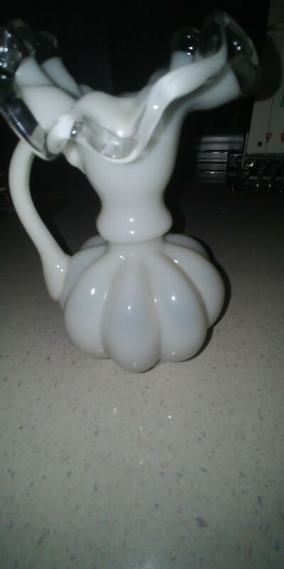 Title (ebay affiliate link): VIntage FENTON WHITE SILVER CREST 6" MILK GLASS VASE: RUFFLED EDGES CLEAR GLASS