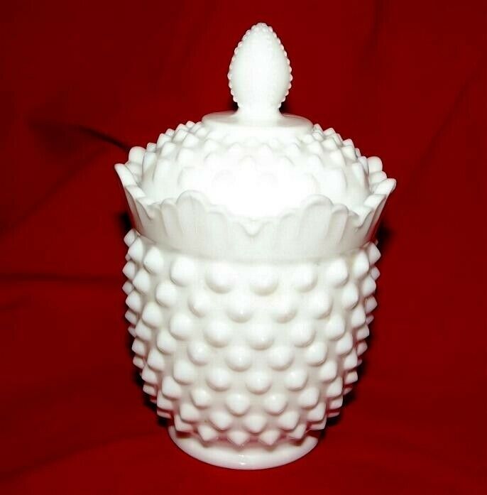 Vintage Fenton White Milk Glass Hobnail Sugar Bowl & Lid